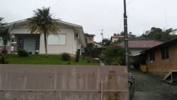 Três famílias tiveram suas residências interditadas nesta terça-feira (30). As casas que ficam próximas ao cemitério municipal, no Centro de São João Batista, devem seguir interditadas até quinta-feira (1), quando a chuva deve cessar.