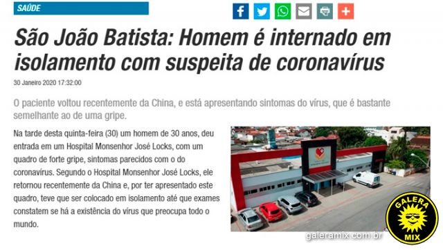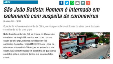 Caso suspeito de coronavírus em São João Batista é fake news