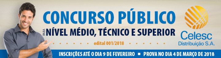 As inscrições podem ser realizadas no site www.2018celesc.fepese.org.br (onde também está disponível o edital), até o dia 09 de fevereiro, ao custo de R$ 90,00 para candidatos a cargos de nível médio, R$ 110,00 para cargos de nível técnico e R$ 130,00 para cargos de nível universitário. A prova está marcada para o dia 04 de março e será aplicada nas localidades de Chapecó, Criciúma, Grande Florianópolis, Joinville e Lages.