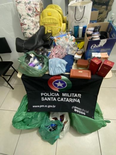 Na casa do casal foram encontradas diversas sacolas e caixas com produtos de perfumaria, roupas, cosméticos, óculos, roupas de praia, carteiras e bolsas. Todos os produtos foram reconhecidos pela vítima, totalizando R$ 15 mil reais em mercadorias.