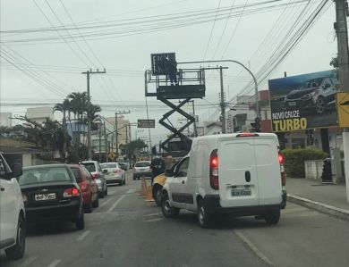 Para instalação do equipamento nesta segunda, o trânsito foi reduzido à apenas uma pista na Avenida Bayer Filho e o local foi monitorado pelos agentes da Ditran.