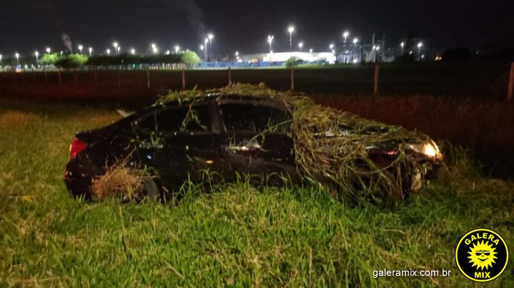 Mais à frente, próximo dos 200km/h, o condutor ultrapassou vários veículos pelo acostamento e acessou Tijucas, porém, por estar em alta velocidade, o condutor perdeu o controle do carro e caiu em um córrego. Devido a água, o motorista precisou aguardar o resgate, feito com o auxílio de um guincho, para retirada do veículo do local. O condutor foi identificado como F. R. M., 25 anos.
