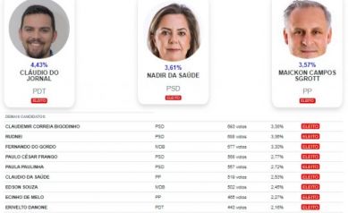 Em primeiro lugar, com 4,43% dos votos, ficou o vereador Cláudio do Jornal (PDT), em segundo lugar ficou a vereadora Nadir da Saúde (PSD), com 3,61% e em terceiro lugar, do PP, ficou Maickon Campos Sgrott, com 3,57%.