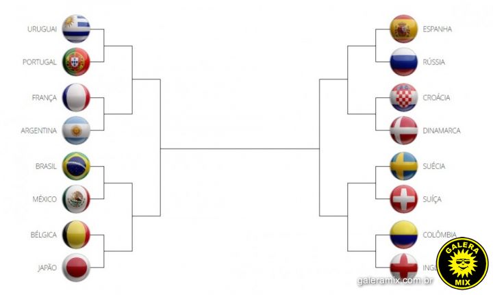 Os oito confrontos das oitavas de final estão definidos após o encerramento de todas as partidas da fase de grupos, que terminou na tarde desta quinta-feira, com a vitória da Bélgica sobre a Inglaterra, por 1 a 0.