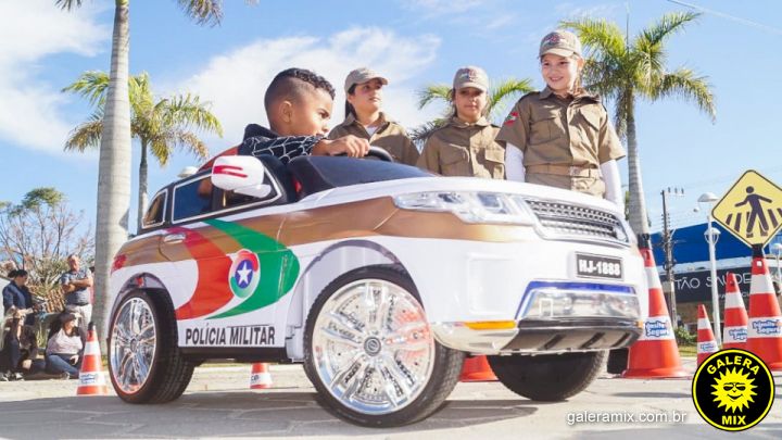Os Policiais Mirins ainda utilizaram uma pista da escolinha de trânsito para guiar as outras crianças pelo caminho, para mostrar como se deve comportar, com respeito à sinalização e aos pedestres.