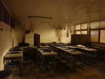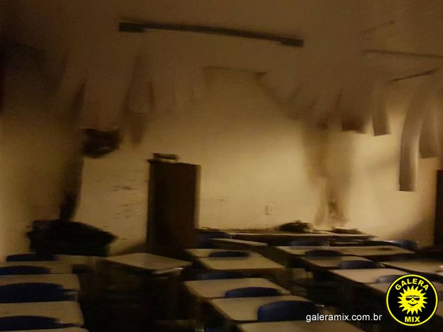 Aproximadamente três salas de aula foram atingidas pelo ato criminoso.