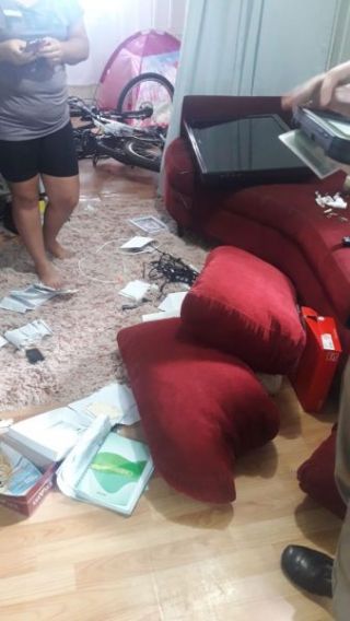 De acordo com informações da vítima, apesar de serem surpreendidos por vizinhos e terem que fugir às pressas, os criminosos conseguiram levar um videogame Playstation 4, perfumes e uma corrente de ouro. Ainda segundo a vítima, a casa estava revirada e televisores e outros eletrodomésticos já estavam separados e seriam levados. Uma porta e uma janela foram arrombadas pelos criminosos.