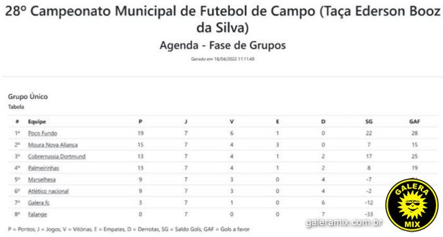 Fechando a rodada, a equipe do Falange, já eliminada, recebeu o líder e já classificado Poço Fundo, que fez valer a força de sua equipe vencendo pelo placar elástico de 8x1.