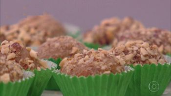 Com as mãos untadas com manteiga, faça bolinhas, passe nas amêndoas torradas e picadas e sirva em seguida.