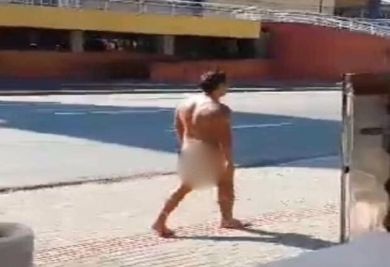 Ele recebeu ordem de parada, porém tentou fugir, vindo a ser contido pelos PMs. Durante a abordagem, um popular informou que outro masculino estaria há cerca de três quilômetros, caminhando na rua, também completamente nu. Sendo assim a guarnição deslocou até o local e localizou I J S A (16 anos), onde de imediato investiu contra os policiais, tentando morder um dos agentes.