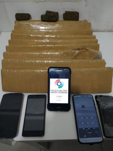 Com Douglas R. P., de 32 anos e Anderson D.F. a polícia encontrou dois aparelhos celulares. No veículo, dentro de uma mala, haviam 9 tabletes de maconha e três porções menores, além de outros dois aparelhos celulares.