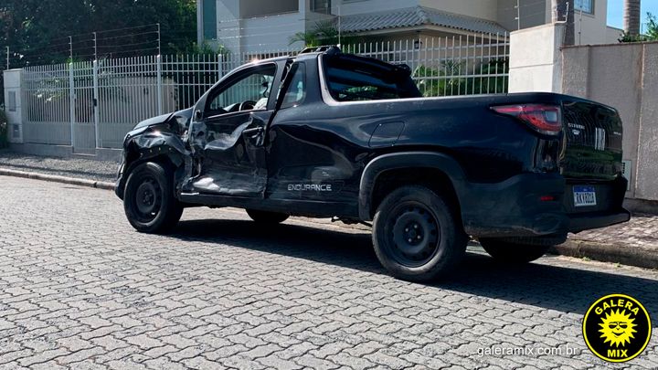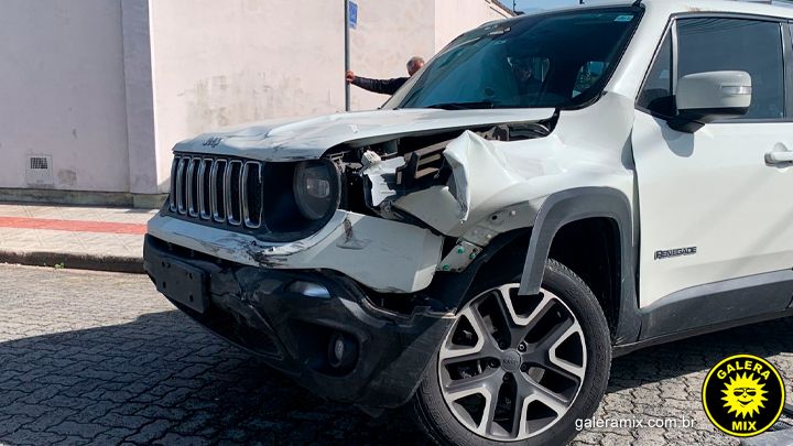 Um acidente envolvendo um Jeep/Renegade e uma caminhonete foi registrado na rua Araça, no início do loteamento Mata Atlântica, em Tijucas.