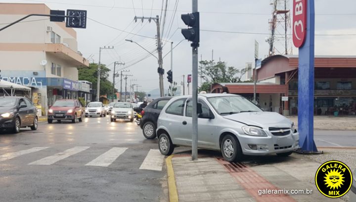 Dois veículos se envolvem em acidente em cruzamento com semáforo no centro de Tijucas