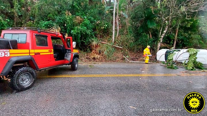 Dois veículos colidiram na SC-410 após a queda de uma árvore na rodovia. O acidente foi registrado na última terça-feira (30), no bairro Rio do Braço, em São João Batista.