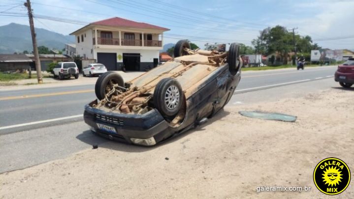 Um capotamento foi registrado na SC-410, em Canelinha, envolvendo dois veículos: um Ford/Ka branco e um Fiat/Uno preto, na tarde desta quarta-feira, dia 27 de novmebro. O acidente aconteceu quando ambos os carros seguiam no mesmo sentido, de Canelinha para Tijucas.