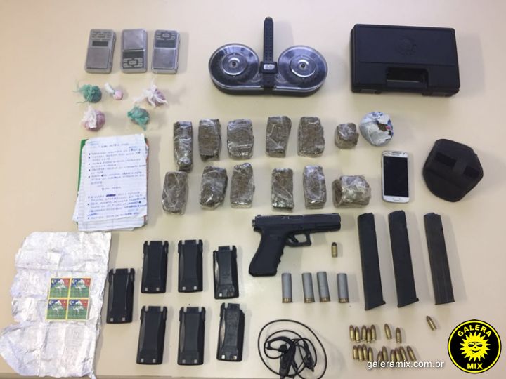 O mesmo foi identificado como Matheus de Jesus Wagner, 22 anos. Com ele também estava baterias para radiocomunicadores e balanças de precisão para pesar as drogas.