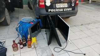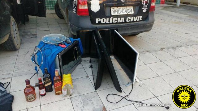 No veículo abordado foram encontradas 04 televisores, bebidas e outros objetos que haviam sido levados de apartamentos arrombados em um edifício localizado na Rua Canela, em Bombinhas.
