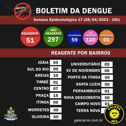 O contágio aumentou em sua maioria no Bairro Praça e os outros bairros ou localidades que já apareciam no boletim, também tiveram crescimento nos números. Nesta semana, a Localidade de Campo Novo registrou o primeiro caso.