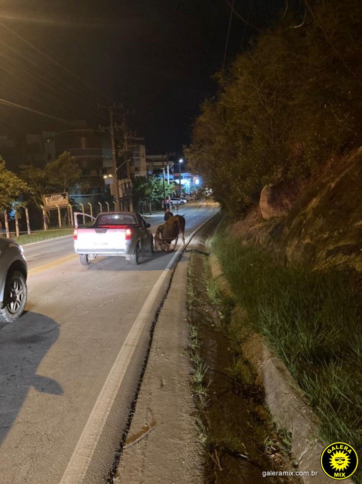 Policiais tiveram dificuldade para dispesar farristas e capturar um animal que era usado na prática da farra do boi na noite deste sábado, 27 de março, em Bombinhas.