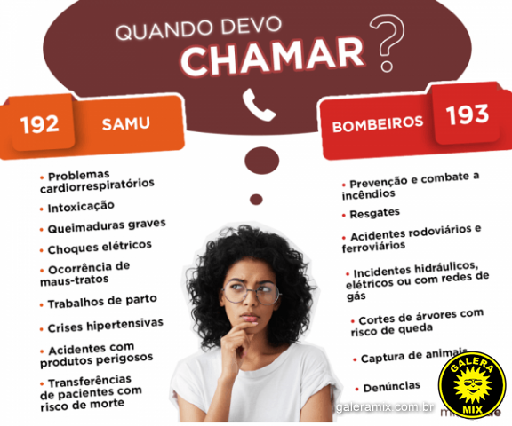 Em situações de emergência é comum surgir dúvida sobre qual órgão acionar para prestar o atendimento necessário à vítima. O Ministério Público de Santa Catarina lançou uma cartilha de auxílio ao cidadão através de suas redes sociais, de quando devemos chamar o Corpo de Bombeiros (193) ou Serviço de Atendimento Móvel de Urgência – Samu (192), pois apesar do atendimento de primeiros socorros ser feito pelos dois organismos, Bombeiros e Samu não são a mesma coisa.