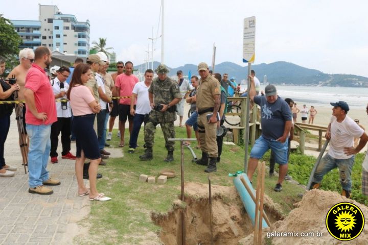 Foi solicitado a empresa o projeto, onde mais uma vez não constatava a instalação desse sistema no local. Foi cavado e aberto o dispositivo onde podemos ver que o esgoto bruto sai daquela tubulação, se aberto vai parar diretamente no mar.