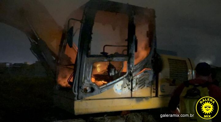 A máquina foi deixada no local para evitar transporte noturno e retomar trabalhos no dia seguinte. Equipes da prefeitura e o Corpo de Bombeiros foram acionados, controlando o fogo sem feridos.