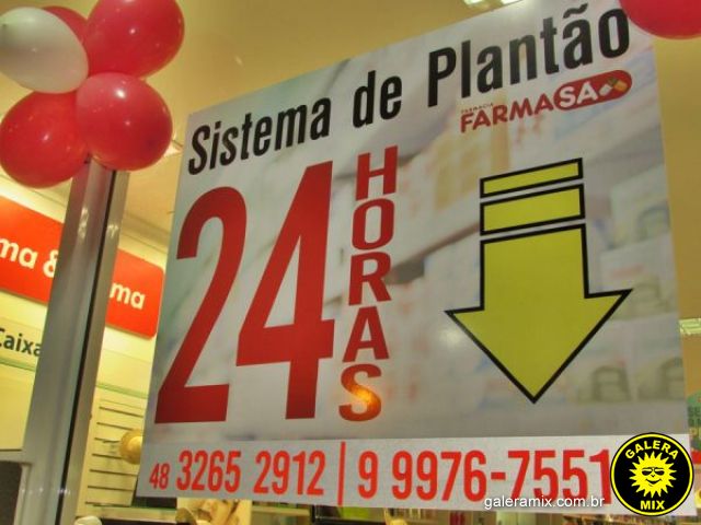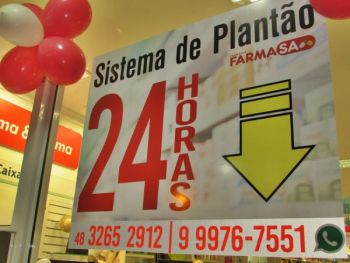 “Queremos estar prestando um serviço para comunidade”. Esta foi a frase que resumiu a inciativa da direção da Farmácia Farma Sá que agora tem plantão 24 horas. Mais informações podem ser obtidas através do telefone 3265 – 2912, a farmácia fica localizada na Rua Zunino Neto centro da cidade.
