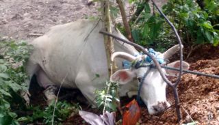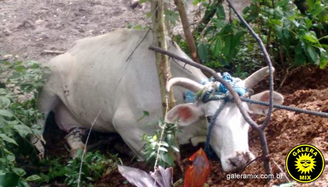 Na manhã desta segunda-feira, dia 20 de março, uma vaca foi encontrada amarrada, com as patas dianteiras quebradas e machucada, atrás do Campo de Futebol do Pescador, na Fazenda da Armação.