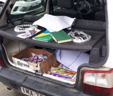 O automóvel, que estava estacionado exatamente em frente ao portão de entrada da escola, desde às 07h30min, estava plotado com propaganda de candidatos, sendo posteriormente localizado no seu interior vasto material de campanha. A proprietária do veículo, B.W.B, de 28 anos, compareceu ao local e alegou que havia deixado o carro ali estacionado e foi trabalhar.