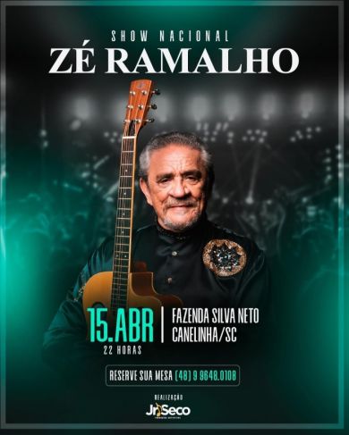 Veja quem vai curtir o show do cantor Zé Ramalho no CTG Fazenda Silva Neto em Canelinha, por conta do Galera Mix.