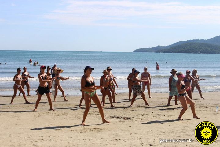 Ginástica na Praia do Perequê reúne moradores e turistas