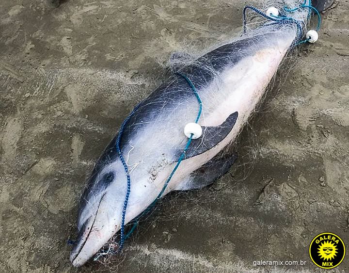 Um dia após um grande grupo de golfinhos ser avistado nas águas da Meia Praia, em Itapema, a Polícia Militar Ambiental foi acionada para atender à uma ocorrência lamentável. Um desses animais foi encontrado morto, preso numa rede de pesca conhecida como "feiticeira", que é proibida. O fato aconteceu nas proximidades da rua 273.