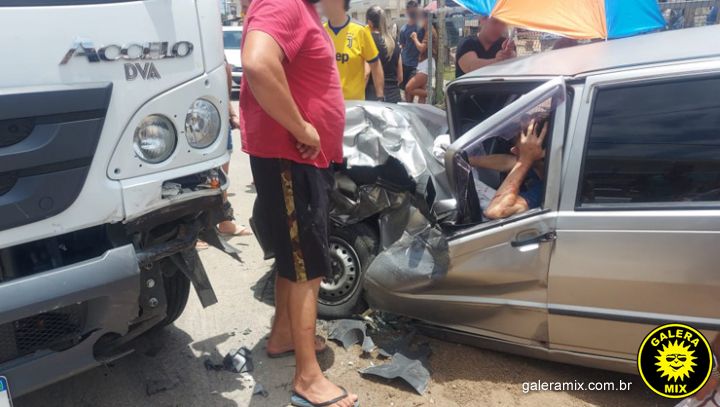 Um acidente grave entre carro e caminhão foi registrado no último sábado (19), em frente à Verona Materiais de Construção, no bairro Areias do Meio, em Governador Celso Ramos. O fato aconteceu por volta das 12h, momento em que o caminhão da empresa tentava entrar no pátio.