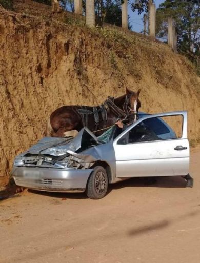 Ainda de acordo com relatos, o animal teria se desprendido da charrete o que veio a causar o acidente. A Polícia Militar de Canelinha foi acionada para registrar o ocorrido. O carro ficou parcialmente destruído devido ao choque.