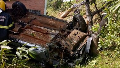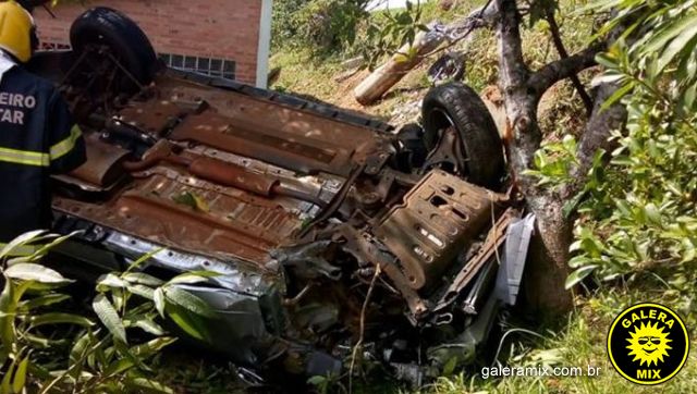 O condutor perdeu o controle da direção e colidiu contra um poste de energia elétrica. O veículo capotou e parou em um terreno às margens da rodovia com as rodas para cima.