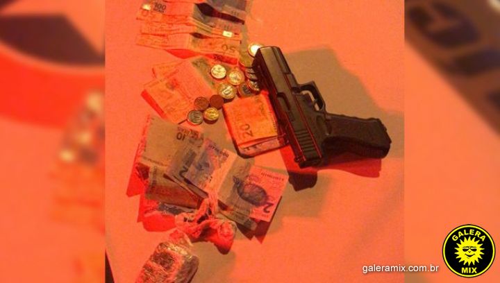 Com ele a polícia apreendeu 15 gramas de maconha, três petecas de cocaína, um simulacro de arma de fogo e pouco mais de R$ 1 mil, em espécie.
