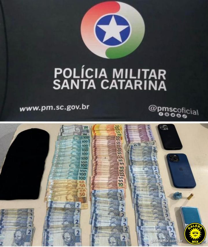Durante a abordagem e busca no interior do veículo, os policiais localizaram uma mochila contendo uma balança de precisão, uma porção de cocaína pesando cerca de 7 gramas, uma touca tipo balaclava, uma munição de calibre .38, dois celulares e a quantia de R$ 2.459,00 em dinheiro.