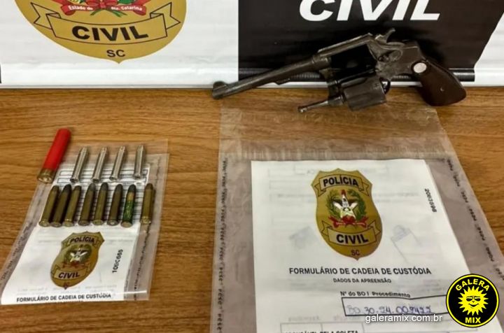 Nesta sexta-feira, 22 de novembro, a Delegacia de São João Batista, em conjunto com a Delegacia de Nova Trento, cumpriu um mandado de busca e apreensão no bairro Ponta Fina Norte, em Nova Trento. A ação resultou na apreensão de um revólver calibre .38, 12 munições de mesmo calibre e uma munição de calibre .32.