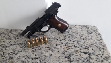 Após buscas, um revólver calibre .380 contendo dez munições, foi localizado dentro do carro do suspeito. Há informações de ele possuía documento de porte, mas não apresentou.