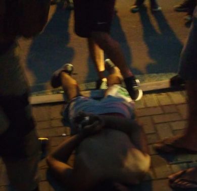Os Policiais rapidamente se deslocaram até o local onde encontraram o homem bastante transtornado e agressivo, tentando contra a integridade das pessoas que passavam pelo local. Os PMs então renderam o homem que foi detido até a chegada do SAMU, para que ele fosse medicado e encaminhado ao Hospital.