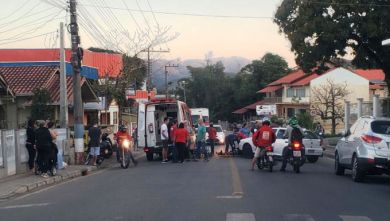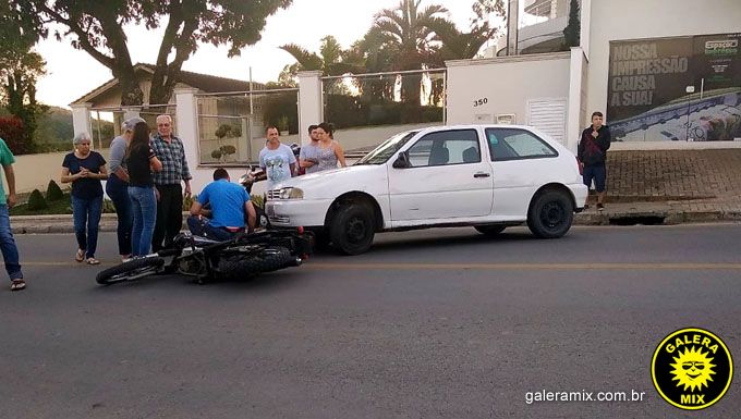 Um motociclista ficou ferido após uma colisão com um carro na tarde desta terça-feira (30), em São João Batista. O acidente aconteceu na Rua Zunino Neto, por volta das 17h.