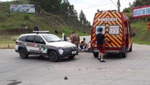 Um acidente registrado na tarde desta quarta-feira (16) na Rodovia SC-410 envolvendo carro e moto deixou uma vítima com suspeita de fratura. O homem recebeu os primeiros atendimentos no local pelas equipes do Corpo de Bombeiros e Samu e foi encaminhado ao hospital.