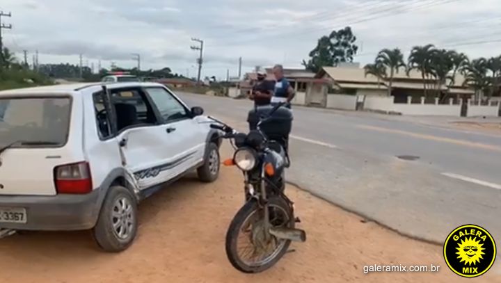 Uma colisão envolvendo um automóvel Fiat/Uno e moto Honda/CG, deixou um homem ferido na tarde desta quarta-feira (05), em Tijucas. O acidente ocorreu na SC-410, no bairro Nova Descoberta.