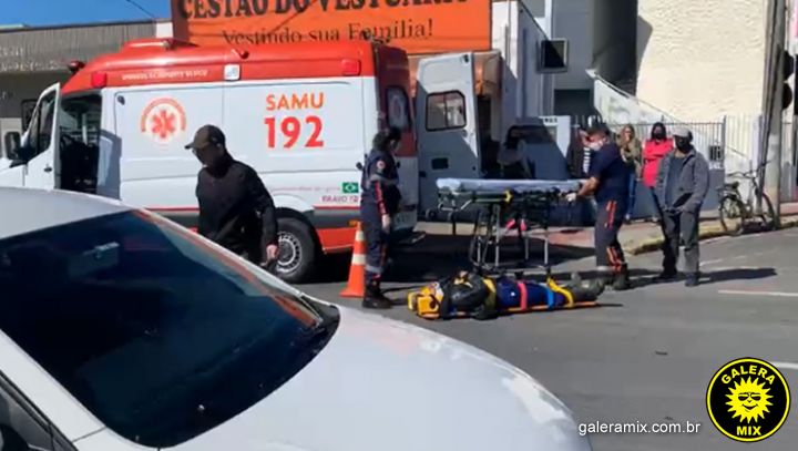 Homem fica ferido em colisão entre carro e moto no centro de Tijucas