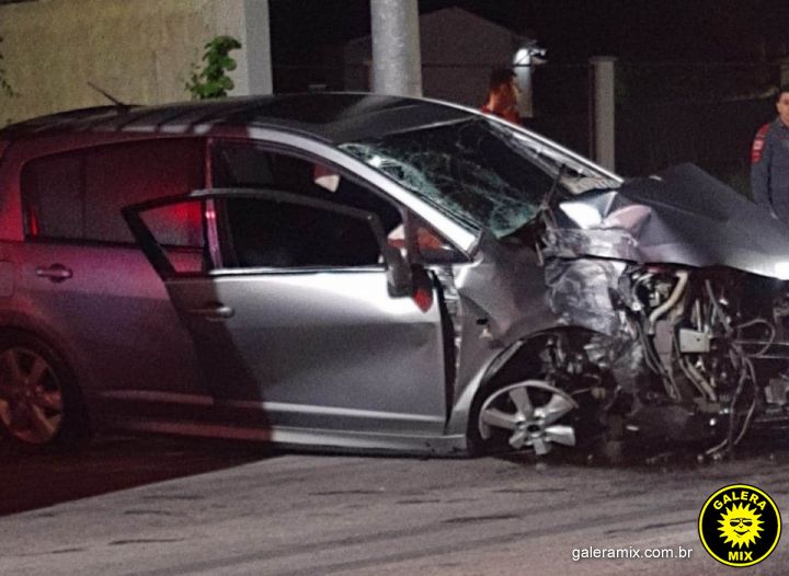 O CONDUTOR de um Nissan/Tida acabou colidindo contra um poste da rede elétrica.