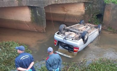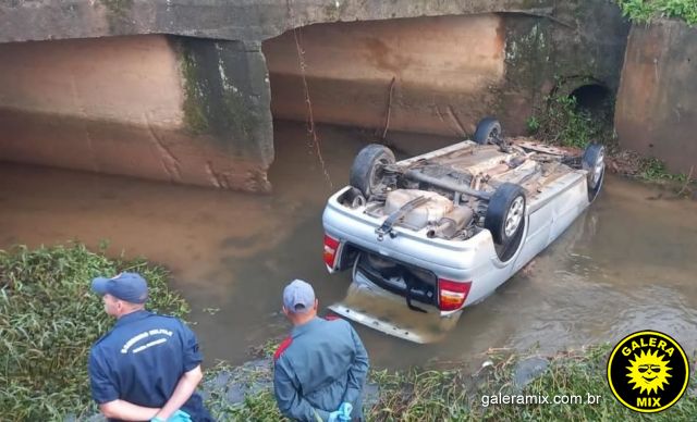 O acidente resultou em danos no veículo, que ficou virado dentro do córrego e o óbito do condutor.