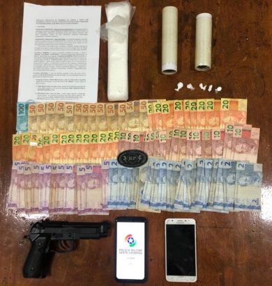 Em buscas na residência os militares encontraram mais quatro petecas de cocaína, além de um simulacro de pistola, rolos de papel filme e sacos plásticos para embalar as drogas, além de R$ 1.539,00 (um mil, quinhentos de trina e nove reais) em dinheiro. Ainda na casa, os policiais apreenderam um contrato particular de compra e venda da aquisição de um imóvel, no valor de R$ 300.000,00 (trezentos mil reais).