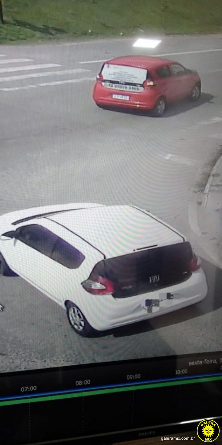 As câmeras de segurança do local registraram o momento do furto. As imagens mostram claramente que os suspeitos estavam a bordo de um outro Fiat/Mobi de cor branca, que teria sido usado na ação criminosa.