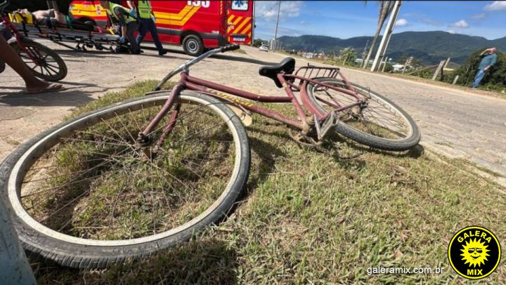 Um atropelamento envolvendo um carro e uma bicicleta deixou um idoso de 85 anos ferido na manhã desta sexta-feira (02), por volta das 10h57, na Avenida Prefeito Silvestre Nunes Júnior, no bairro Areião, em Canelinha.