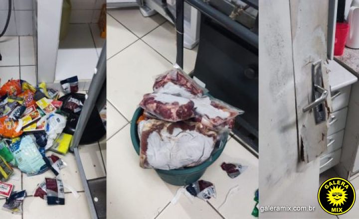 Ao chegar no local, os policiais flagraram um homem, de 63 anos, identificado pelas iniciais E. L. R., pulando o muro da escola. A guarnição imediatamente deu voz de parada e realizou uma busca no local. Foi constatado que a porta da escola havia sido arrombada e que alguns alimentos estavam sendo embalados para serem furtados.